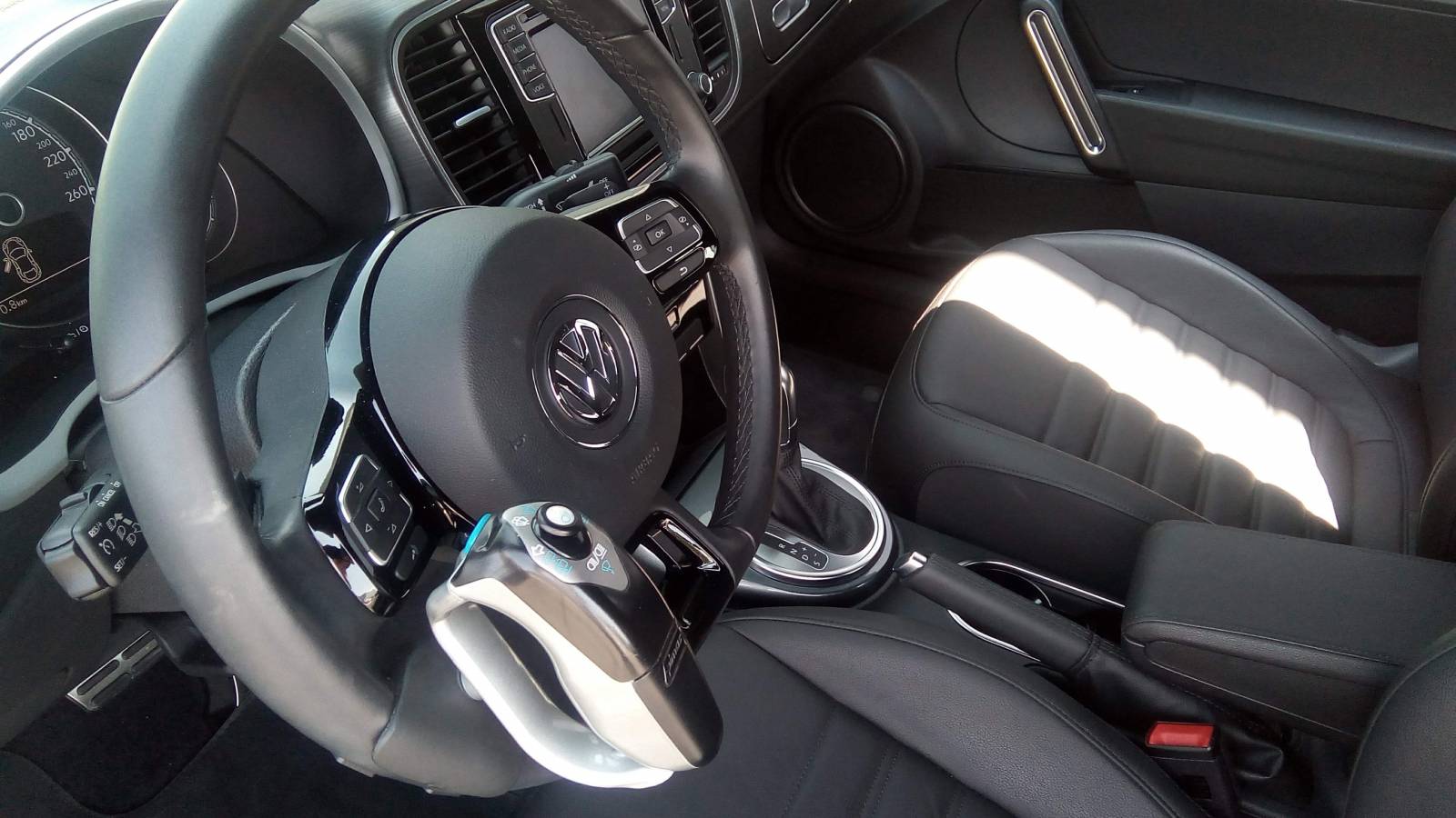 Pour cette voiture, nous avons procédé à la mise en place d'une télécommande multifonctions intuitive qui permet de rassembler les commandes du commodo au même endroit. Cette télécommande peut être installée à gauche comme à droite du volant.